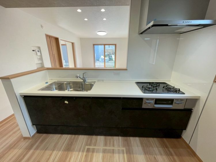 キッチン|広いワークっとプで作業のしやすいキッチンです♪落ち着いた色合いがおしゃれです!